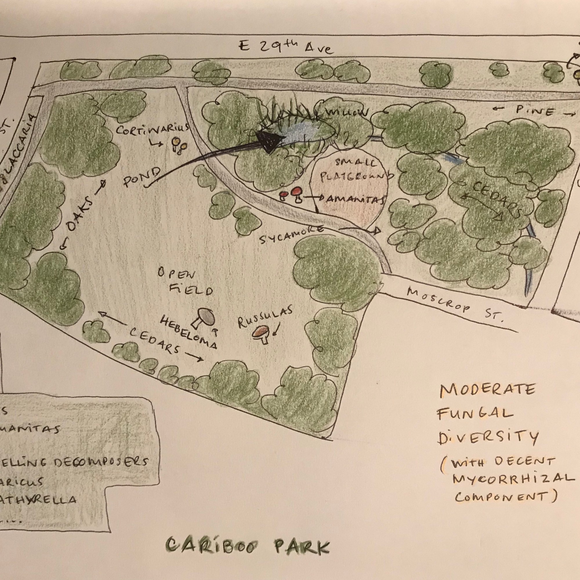 This project will culminate in the production of a series of free downloadable self-guided audio mushroom walks of the three parks, integrating recorded stories and sounds about the fungi encountered, and an artistic booklet featuring maps, art, writings and movement scores created by the artists and the community members involved in the project.